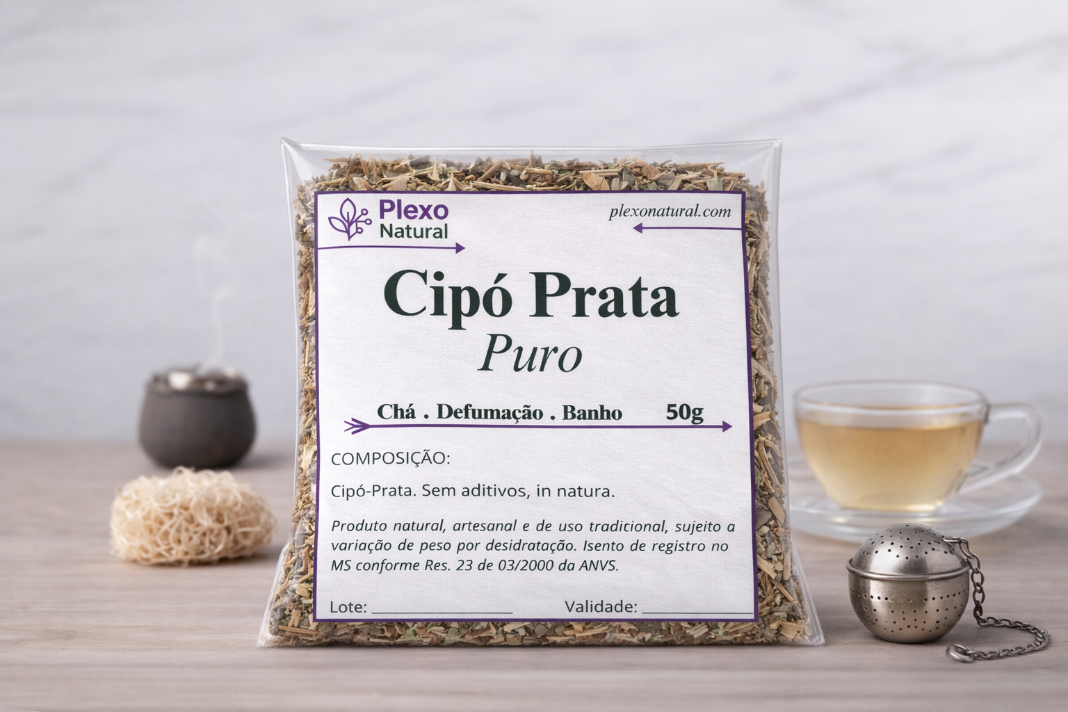 Na Plexo Natural, o Cipó-Prata é oferecido puro, sem misturas ou aditivos, respeitando o tempo da planta, a colheita consciente e o preparo artesanal.