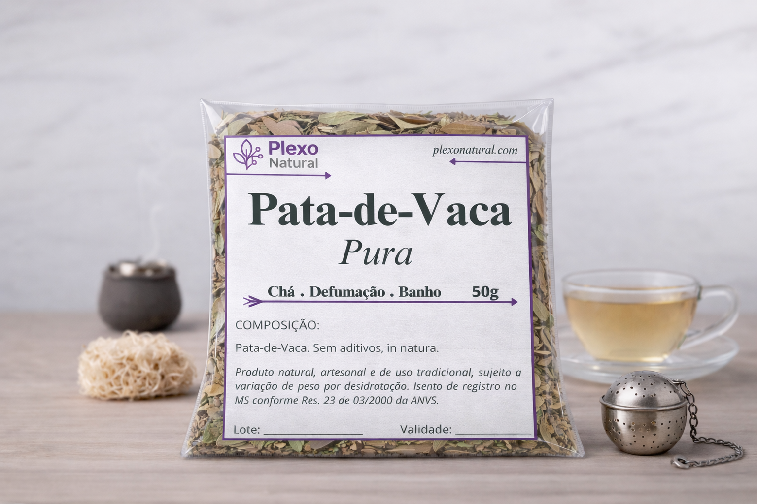 Na Plexo Natural, a Pata-de-Vaca é oferecida pura, sem misturas ou aditivos, respeitando o tempo da planta, a colheita consciente e o preparo artesanal.