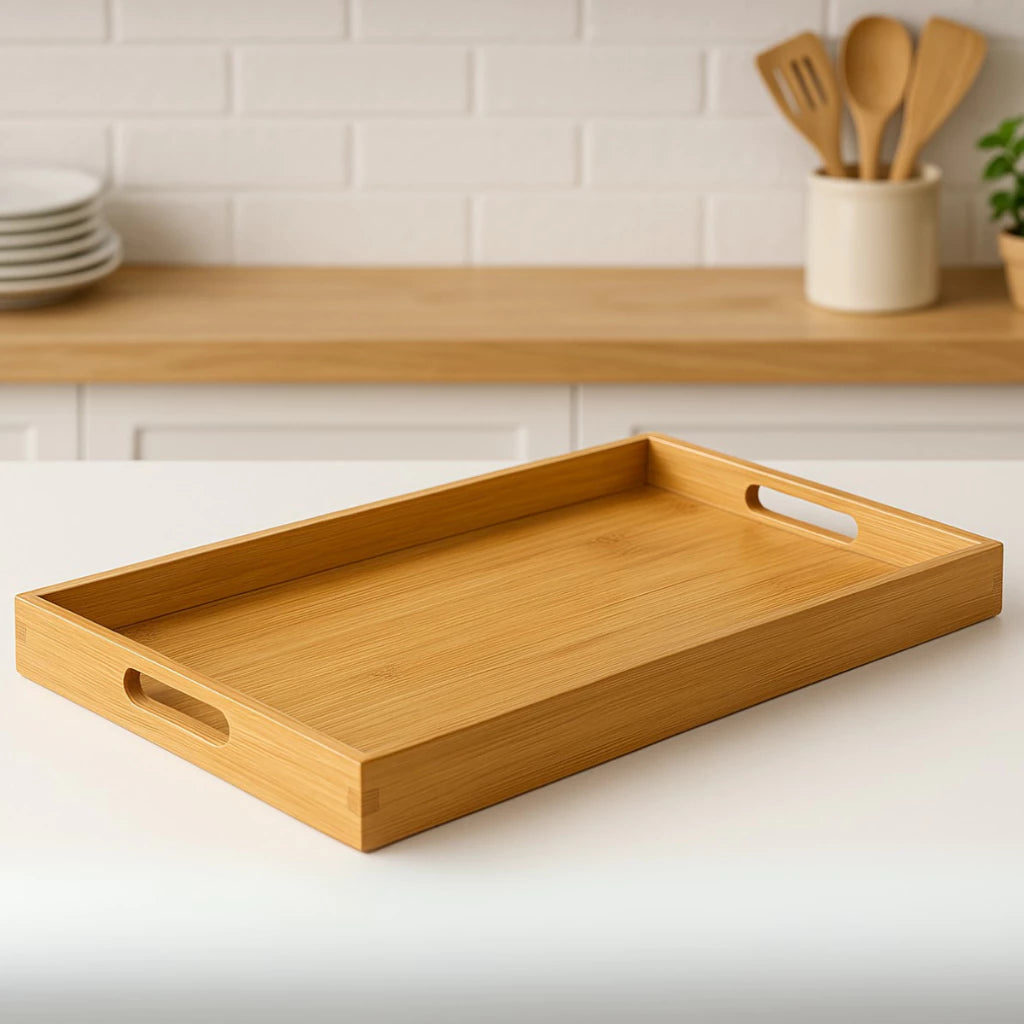 Bandeja de Bambu - Alças Laterais • Uso Diário