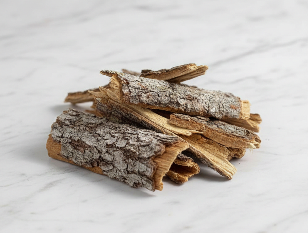 Conhecido como uma madeira de força. Na tradição oral, está ligado à sustentação, firmeza e vitalidade. Usado em banhos, chás e preparos que simbolizam resistência, clareza e fortalecimento do corpo e do ânimo. Aqui representa o masculino.